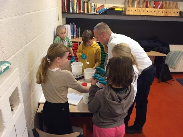 I explained them what concrete and asphalt is, how you make it and what problems or challenges there are with these materials. Of course self healing had to be included. I even showed the self-healing ice to them. They found that really fascinating.