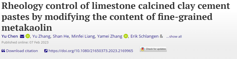 Article Yu Chen in Journal of Sustainable Cement Based Materials