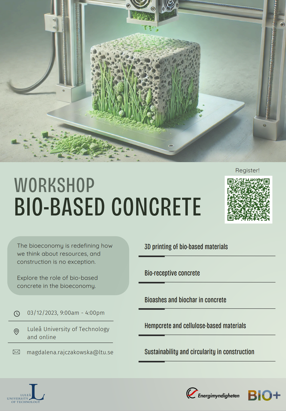 On Tuesday December 3rd, I will give a key-note speech at the Bio-based concrete workshop at Luleå University of Technology in Sweden. The workshop is organised by Dr. Magdalena Rajczakowska.